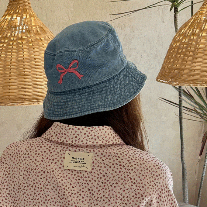 리본 자수+여유있는 깊이감+귀여운 실루엣(면100) 리본 자수 디테일로 귀여운 무드 가득한 벙거지