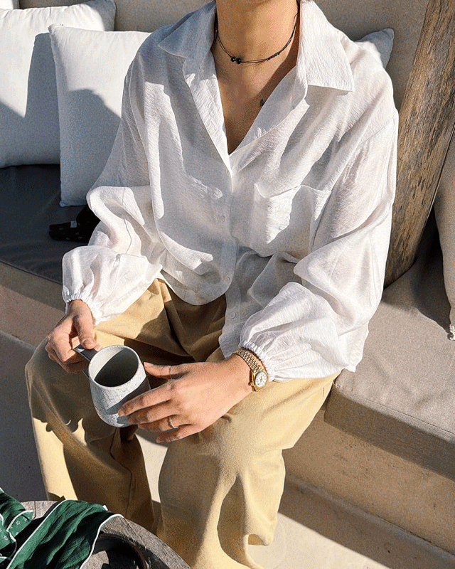 #매크리 B398 실크 글로시 셔츠 블라우스(아이보리,옐로우)