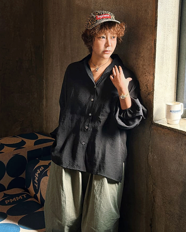 #매크리 B398 실크 글로시 셔츠 블라우스(블랙)
