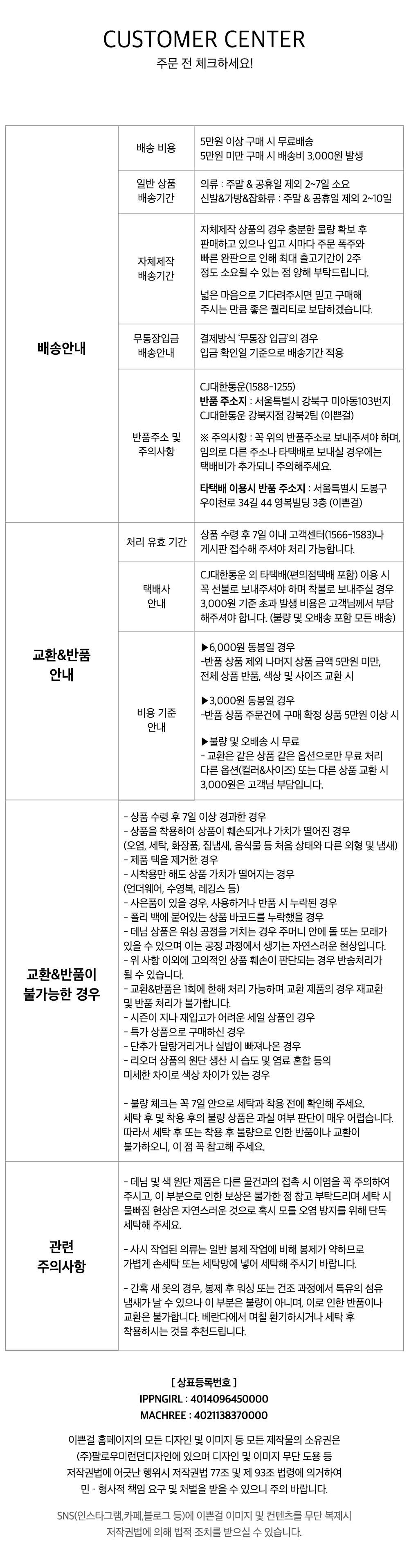 ※ 상품사이즈 치수는 재는 방법과 위치에 따라 1~3cm 오차가 있을 수 있습니다.
