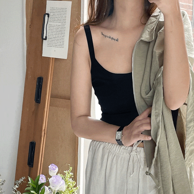 쾌적한 코튼97% & 내장캡으로 간편하게 & 활용도 높은 베이직 크롭나시